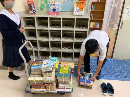 図書館では蔵書整理ということで、古い本がどんどん廃棄されています。手伝ってくれてありがとう!