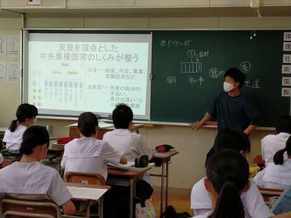 天皇を頂点とした中央集権国家のしくみを習っています。