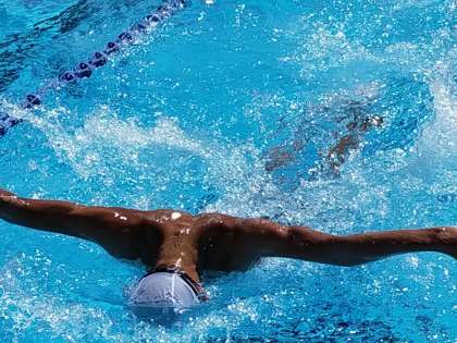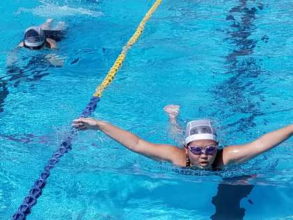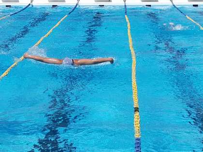 みんながバタフライで泳いでいます。