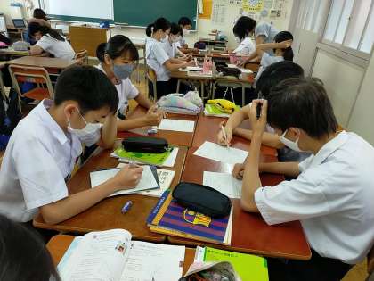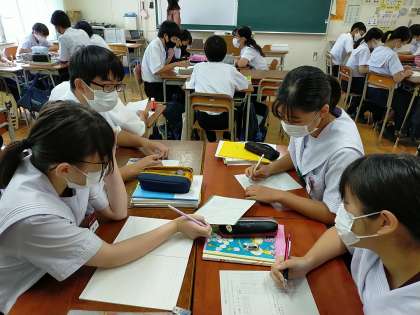 グループで相談しながら、問題を考えています。