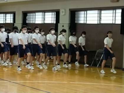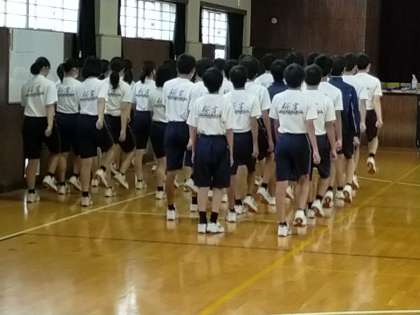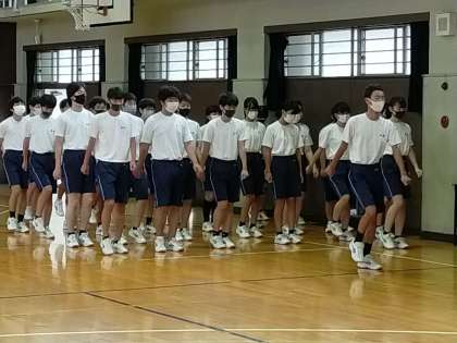 3年生の保健体育では、体育大会の行進練習をしていました。