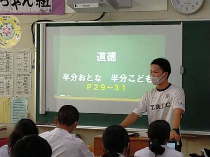 1年生は道徳で、『半分おとな 半分こども』の読み物教材を通して、礼儀について学習しています。