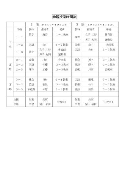 3時間目 10時35分〜11時20分・・・参観授業、PTA決算総会