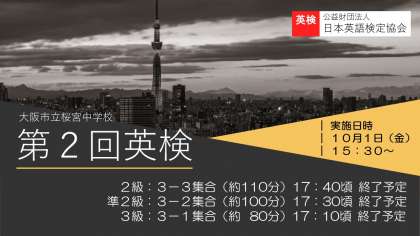 明日は15:30より実用英語技能検定(英検)が実施されます。