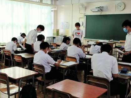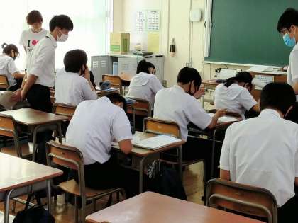 女の先生は本校の教諭ですが、男の先生2人は大学4回生で、本校での教育実習経験者です。