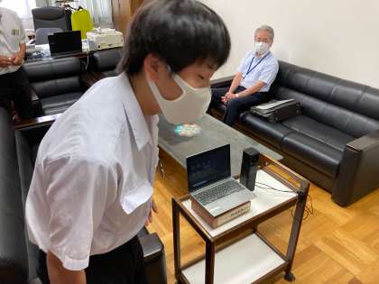 今日の全校集会の前に、体育大会で用いた学級旗の投票結果が発表され、3年1組と2年1組がそれぞれの学年で1位に輝きました。おめでとうございます!