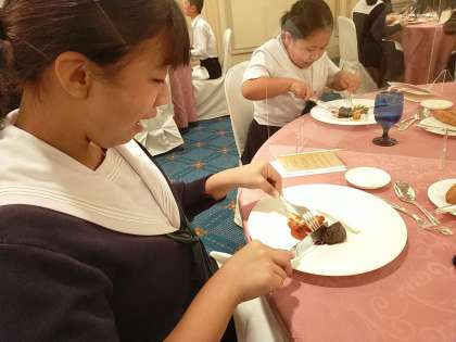 ステーキは切ると肉汁が出てしまうので、食べるぶんだけ切ってね。