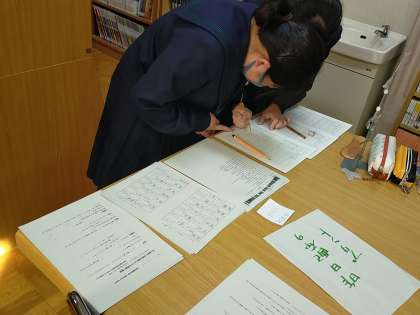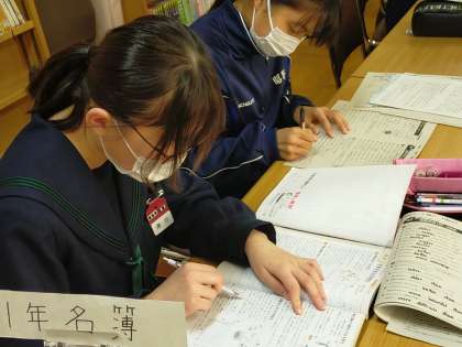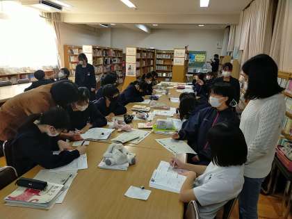 今日は期末テストの一週間前です。元気UP支援員さんが、図書室において放課後学習会をひらいてくださっています。