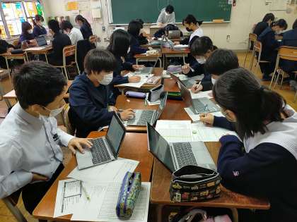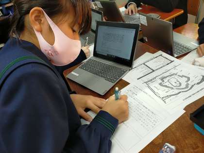 1年生は明後日の金曜日に行う、大阪城での平和学習フィールドワークの事前学習をしています。