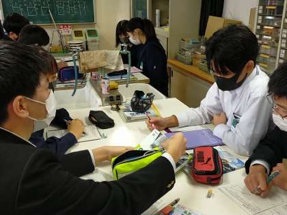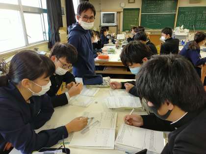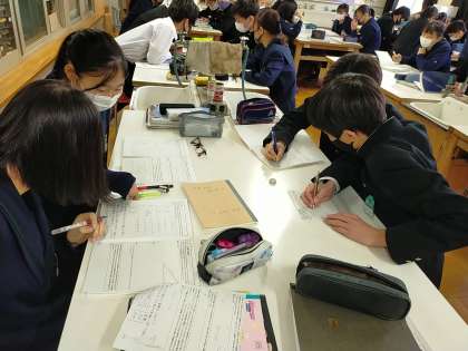 班の仲間とともに互いに意見を交わしながら、一生懸命考えています。