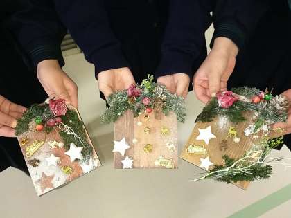 華道部の子どもたちが、クリスマスを前にして、素敵な作品を作りました。