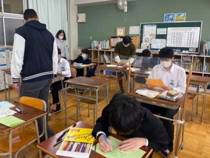 クリスマスカード作りの後は、オーストラリアの遊び『コイン・ラグビー』を教えてもらいました。