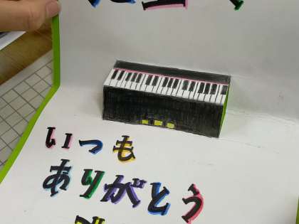 3年生の美術では『ありがとうメッセージカード』を作っています。