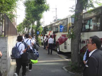 天候にも恵まれ、午前7時の集合には参加者全員がそろい、バスに乗って予定通り学校を出発しました。