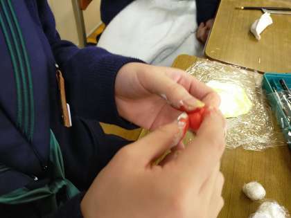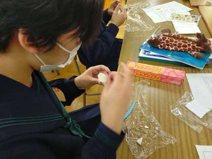 2年生の美術では、ミニチュアストラップづくりをしています。