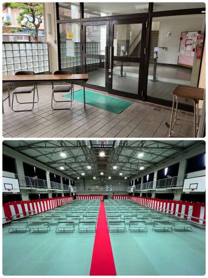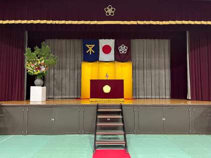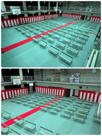 体育館の入学式会場の写真になります。