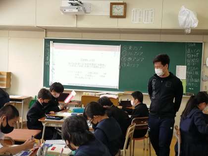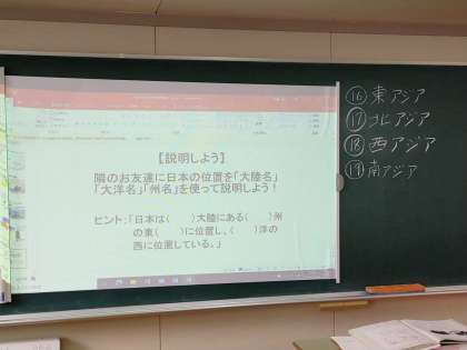 友だちに日本の位置を説明するという課題に取り組んでいます。