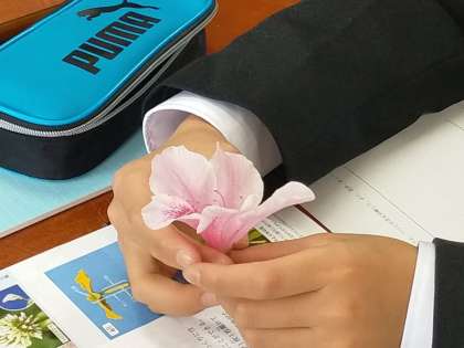 校内にあるツツジをとってきてました。