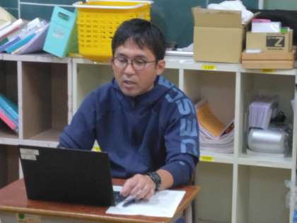 学年主任の小野先生がアンケート結果を示しながら、総括をしています。