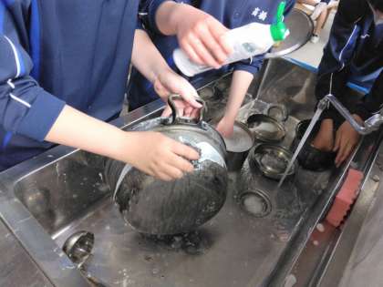 みんなで手分けしてゴシゴシと洗ってくれています。