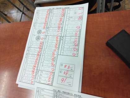 中間テストの結果が返されています。