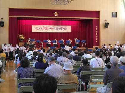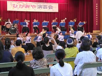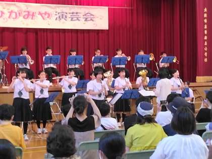 6月12日(日)に、吹奏楽部が『ひがみや演芸会』のオープニングとして招待されて、多くの地域の皆さんの前で演奏しました。