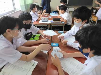 1年生の英語では、英語カードゲームをしています。