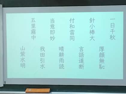 10ある四字熟語の中からグループ内で分担を決めて、一人1問の四字熟語4択クイズを考えます。