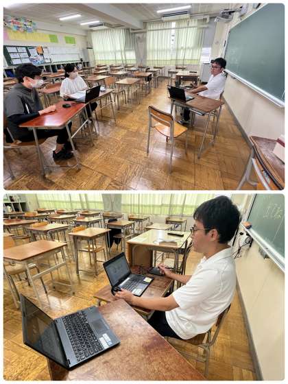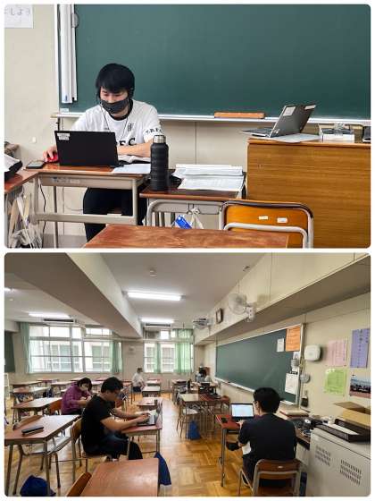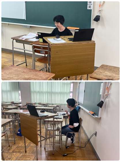 生徒に顔を映して授業をする際に、表情がわかりやすいようにマスクを外して実施するクラス。