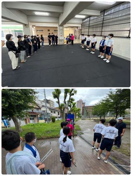 天候が微妙だったため、生徒の参加は7名となりましたが、20名以上のPTA、元気アップ、東都島青少年指導員会の方々にご参加いただきました。