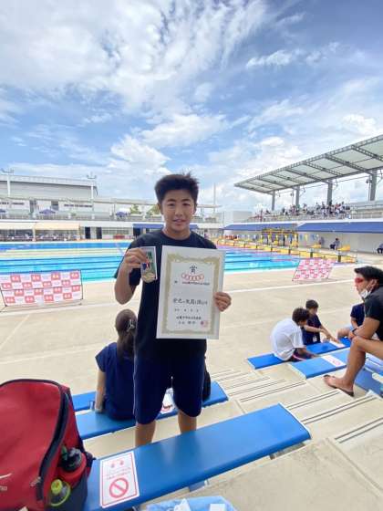水泳部の牧内君 近畿大会で2種目優勝!
