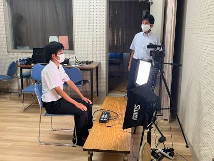 前回実施できなかった、2年生水泳部の牧内くんの表彰を行いました。