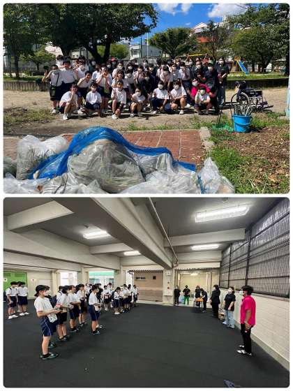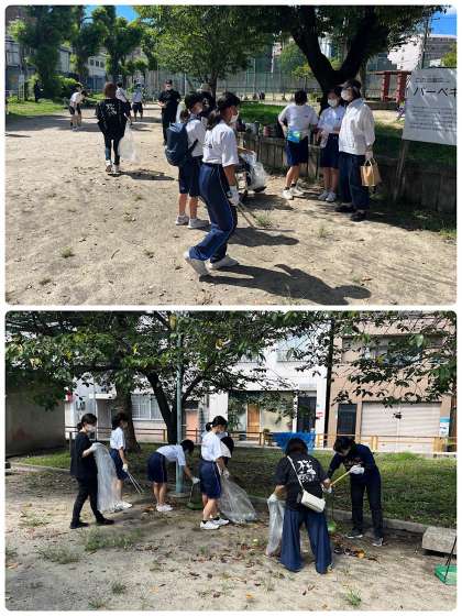 本日は、桜之宮東公園と中学校の周りの清掃活動を行いました。