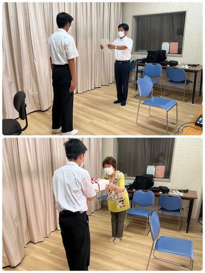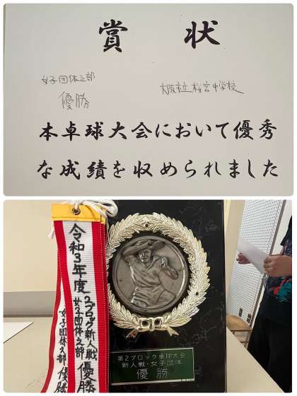 今日は、卓球部女子の2ブロック新人大会の優勝と、水泳部の牧内くんのジュニアオリンピック水泳400m個人メドレーの全国6位の表彰が行われました。