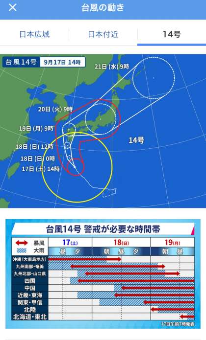 20日(火)については、朝の7時の段階で暴風警報が発令されていた場合は学校は休校となります。
