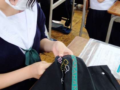 2年生の家庭科では、家庭科で使うファイルを入れるカバーを作っています。