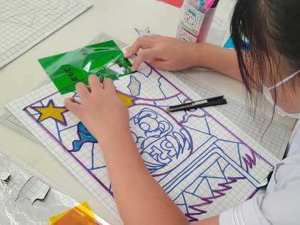 デザインを書いたら骨組みを残してカッターで切り抜き、そこにプラスチック板をカットして貼り付けていくようですね〜。