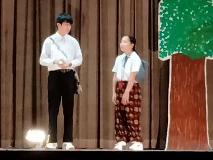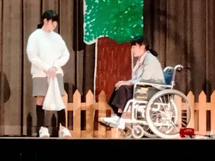 2年生が舞台劇『過去、現在、未来〜北緯34度 東経135度〜』のリハーサルを行いました。