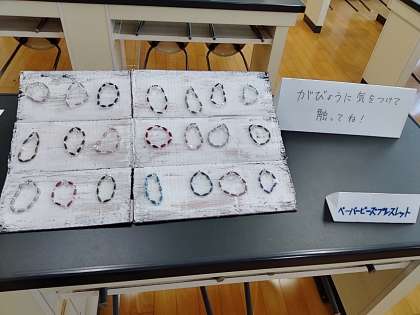ペーパービーズブレスレットを先生たちにプレゼント!