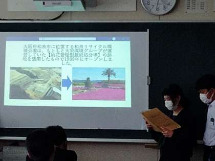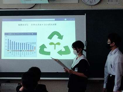1年生の家庭科では、班で調べた『SDGs』についての発表をしました。