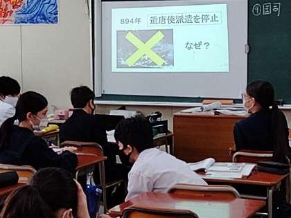 「894年に遣唐使派遣を停止したのはどうしてか?」の問に、近くの人と一緒に考えています。