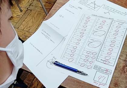 先生がしっかり解説した後は、一人ひとりが出来なかった所を、振り返り学習しています。