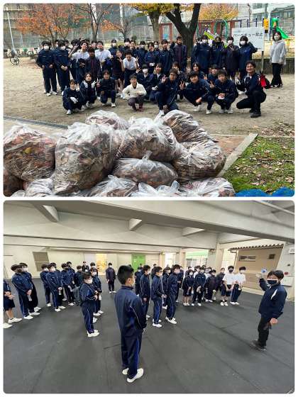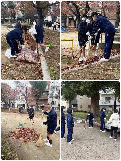 今回も桜之宮東公園と、中学校の周辺の清掃活動を実施しました。