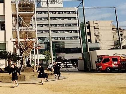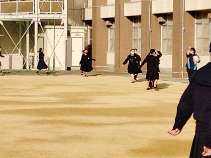 校舎内は慎重に、グラウンドに出たら走ります。