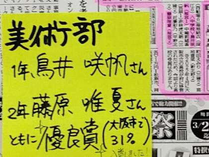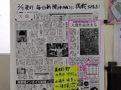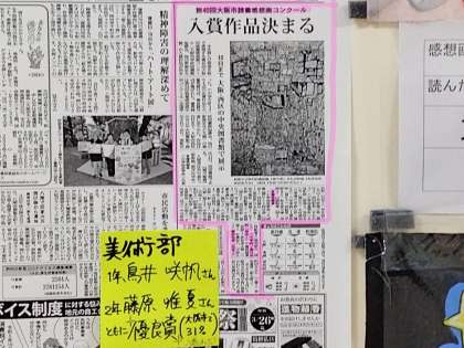 美術部の2名が、大阪市学校図書館協議会、毎日新聞社主催の『第40回大阪市読書感想画コンクール』において、優良賞に選ばれました!