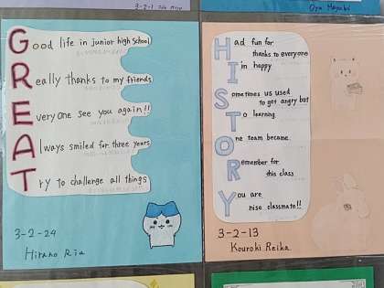 3年生の英語の教科書には、『3年間を締めくくる言葉を考えよう』という単元があります。