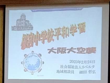 1年生は5,6時間目に平和学習で大阪大空襲について学びました。