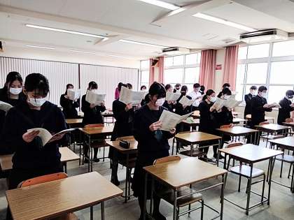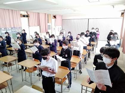 3年生の音楽では、「卒業式」と「卒業生を送る会」で歌う『群青』の練習をしています。
