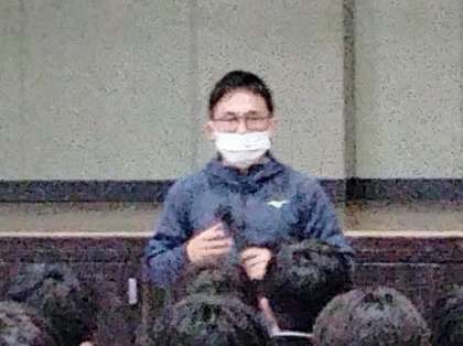 学年主任の小野先生からは、進路決まっている生徒も、公立一般選抜に挑戦する仲間のために今日まで緊張感を持って良く頑張った。