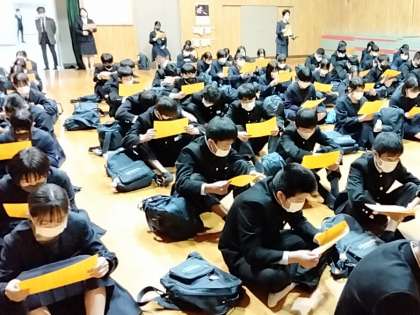 3年生は整列してからクラス名簿が配られました。